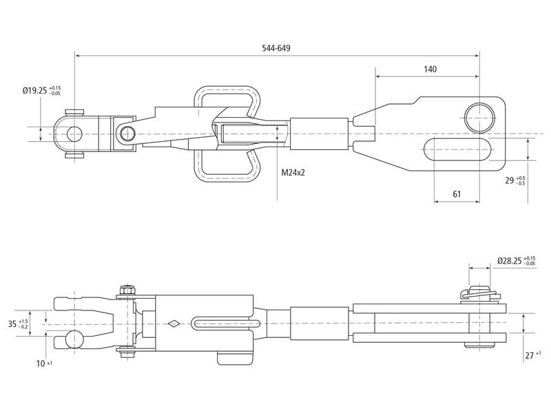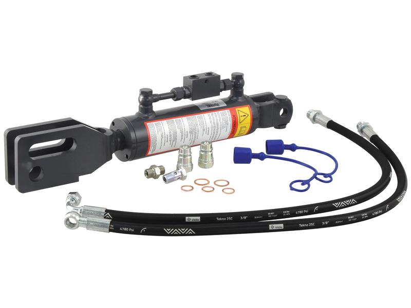 Tirante Laterale Idraulico (Fornito con Flessibili Idraulici) – Forcella Foro Ø 19mm – Forcella Foro Ø 28 & 29x90mm – Lunghezza Min: 545mm, Diametro Int. Cilindro: 70mm.